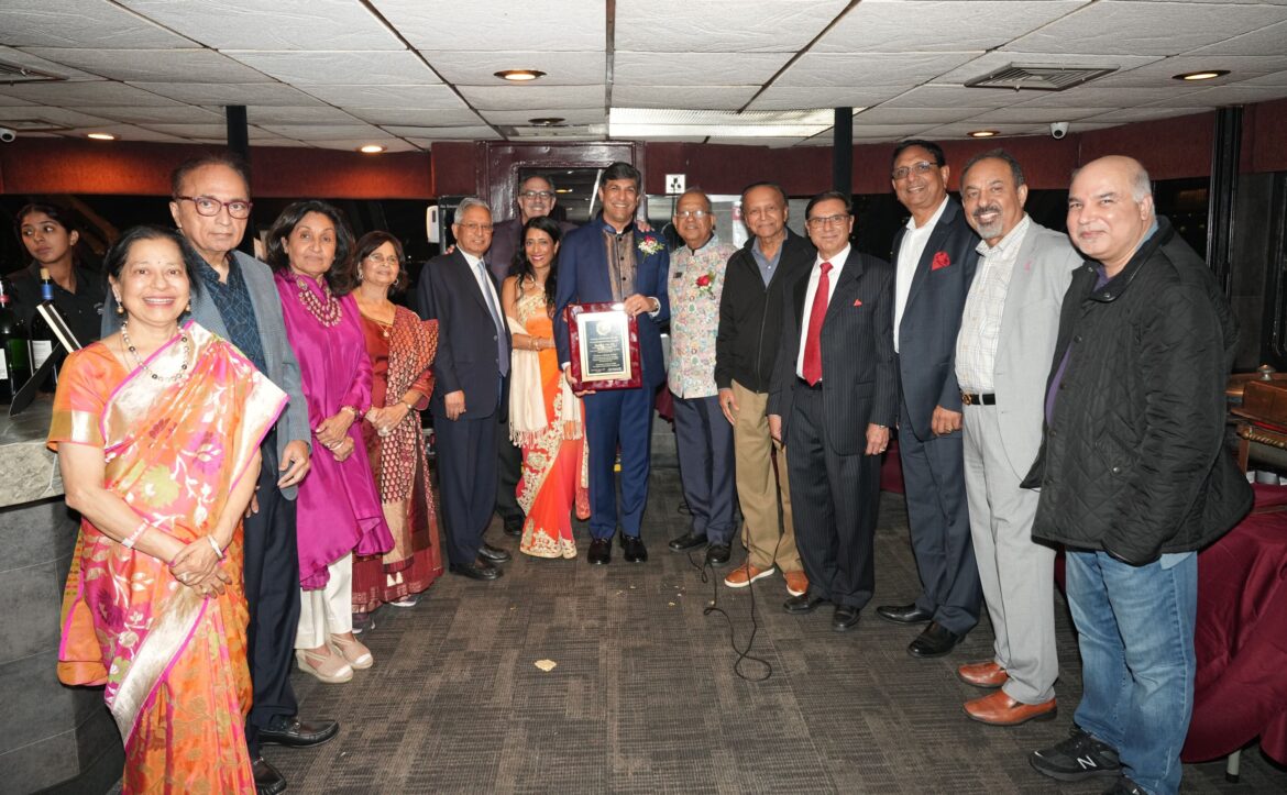 The celebration, post-disembarkation, began with the cocktail hour offering Indian and American beverages alongside an array of Indian hors d’oeuvres. The mood was set by the enchanting saxophone tunes of Sobars Macwan, who played melodious Bollywood music. Gala Chair Mrs. Beena Kothari, welcomed the guests, followed by Dr. Gupta’s introduction of the AIA-NY leadership team and honored guests.