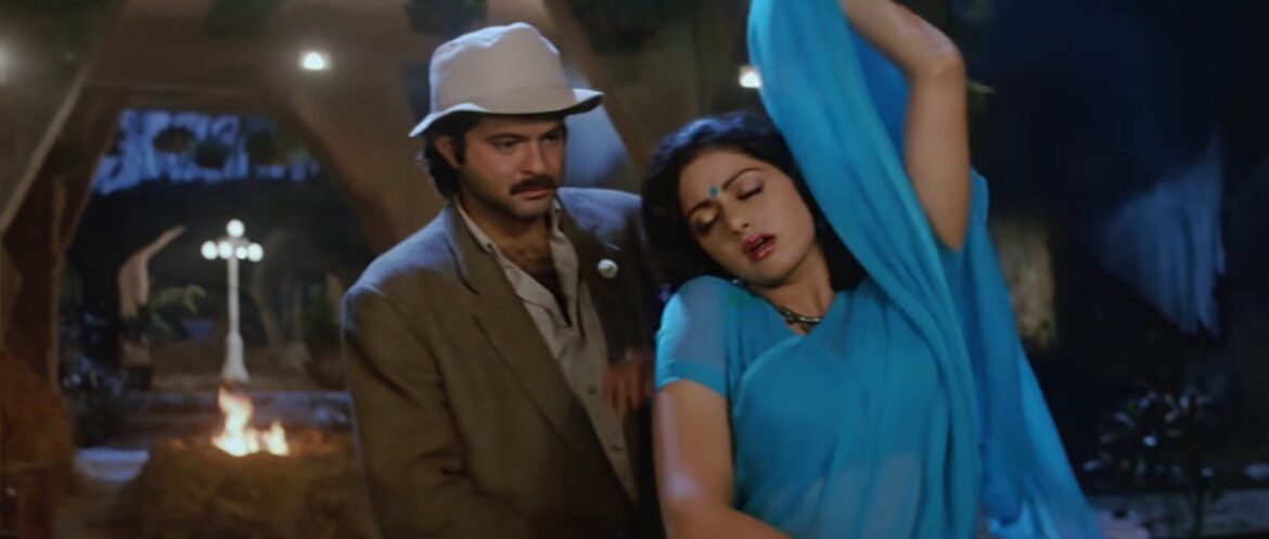This remains the go-to seductive film song even today among the classics, and also a top favorite rain song. Written by Javed Akhtar and composed by Laxmikant-Pyarelal, it has Kishore Kumar complementing her and Sridevi gyrating to Saroj Khan’s exotic (and even erotic!) choreography with Anil Kapoor.