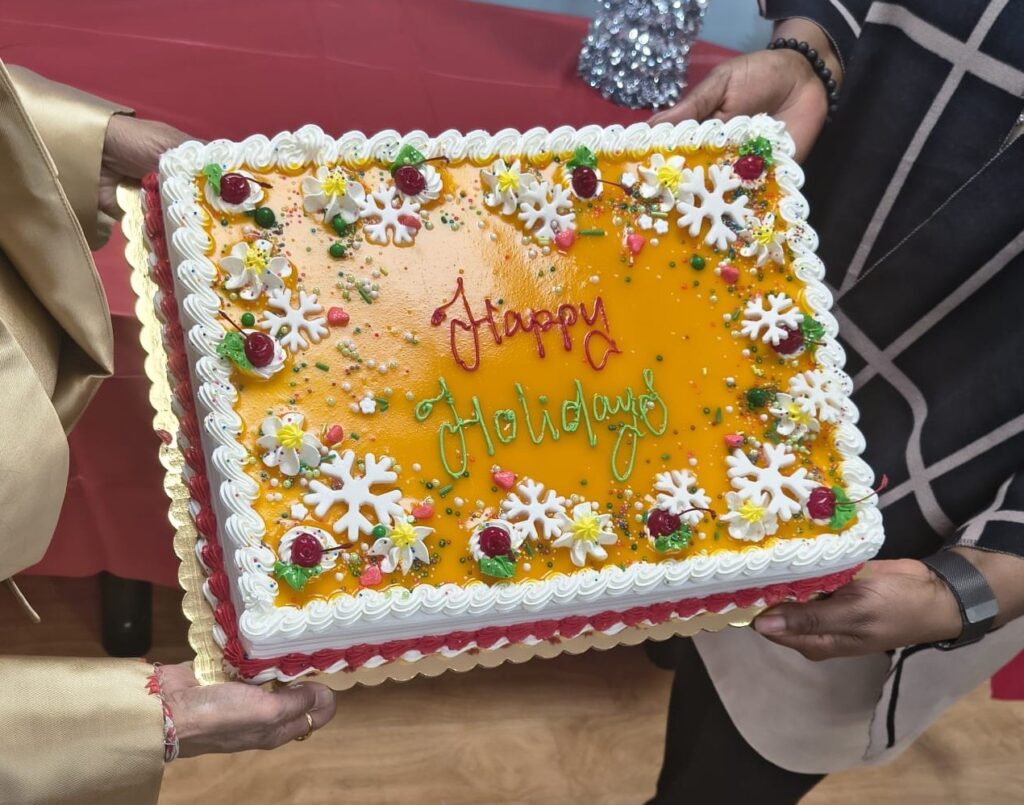 Dr. SenGupta concluded by thanking Akbar Himani, owner of Nanking Restaurant, for sponsoring lunch, and Kaushal Naik, owner of Hot Breads, for providing desserts, including an artisan holiday cake.