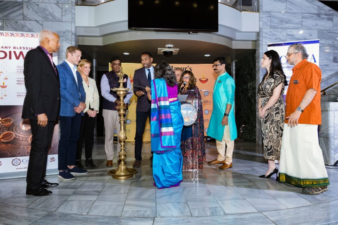 The event began with Mayor Dickens lighting a traditional Diwali lamp, symbolizing the festival of lights. Atlanta City Council President Doug Shipman further honored the occasion by reading a Proclamation celebrating Diwali.