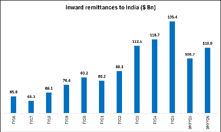 One area of relative resilience is remittances. India, the world’s largest recipient of overseas remittances, is expected to receive $140–145 billion in FY26, supported by its vast diaspora, particularly in the Gulf region.