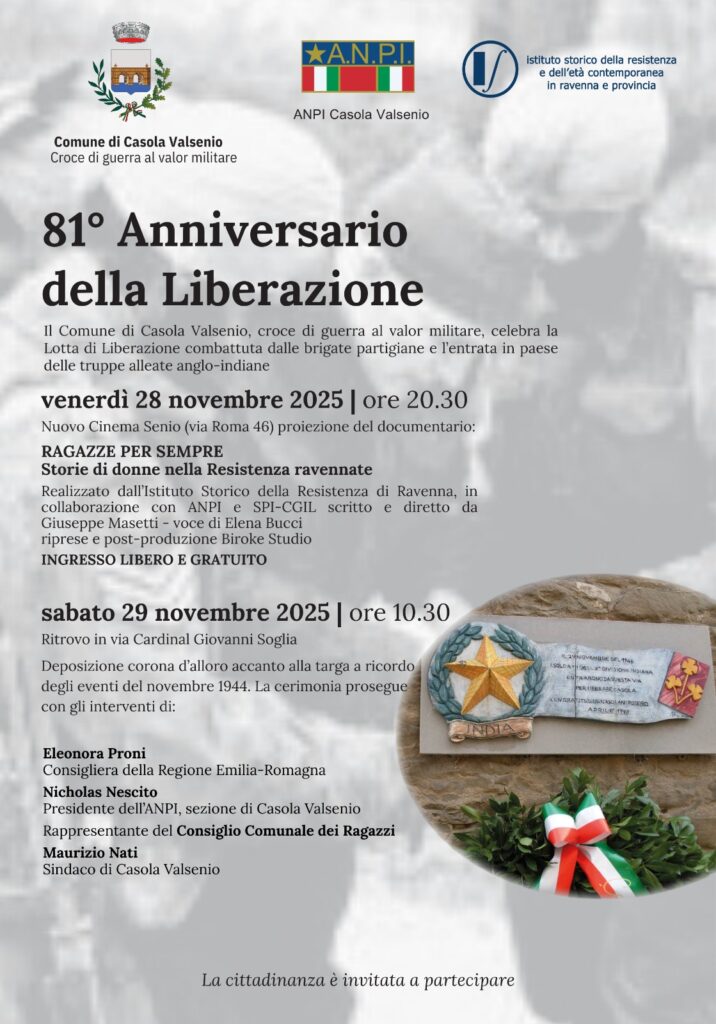 Casola Valsenio, a village founded in 1216 after the destruction of the Casola castle by Faenza troops and now a municipality in the province of Ravenna in Emilia-Romagna, joined this year’s observances. The town celebrated the 81st anniversary of its independence on November 28.