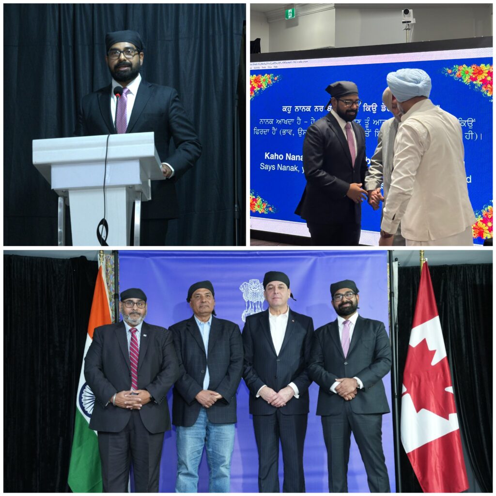 Acting Consul General Kapidhwaja Pratap Singh reflected on Guru Sahib’s unwavering courage and his unparalleled sacrifice for the protection of faith and humanity. The program was conducted by Consul Girish Juneja and included the recognition of outstanding diaspora members: Lajpat Rai Prashar, who called for reviving the spirit of Punjab and Punjabiyat; Kuldip Singh Bacchher, father of University of Waterloo Chancellor Jagdeep Singh Bacchher; Vishal Khanna of Sai Dham food bank; and Professor Paramjeet Singh, honored for his work as a teacher, musician, and singer.