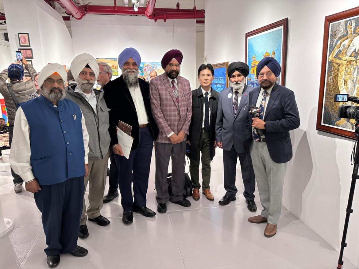 Sandhu also bows to the Golden Temple replica in his house in Queens every day. So, it was natural for him to convey the supreme spiritual significance and unique architecture of Harmandir Sahib envisioned by Guru Arjan Dev in various tones of nectar in mosaic. Comments Prof. Saroj Rani, former Chairperson, Department of Fine Arts, Punjabi University, Patiala, “Each piece of mirror recites shabad and chants the glory of the Almighty.  There is bliss in the reflection of the temple in the Sarovar. The plinth, parapet, pillars, arches, gumbads, and minarets are perfect, as if Lord Vishvakarma himself built them.”