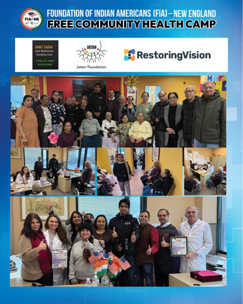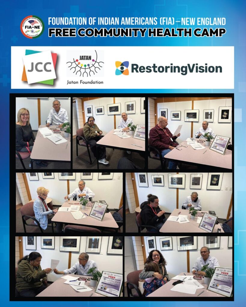 As part of its ongoing efforts to promote community health, the Foundation of Indian Americans New England has organized a series of free Vision Camps at locations across the New England region. These include the JCC Center in Worcester, Crossroads Rhode Island in Providence, Community Care Alliance in Woonsocket, Rhode Island, and the Amrit Sabha Adult Day Care Center in Northborough, Massachusetts.
