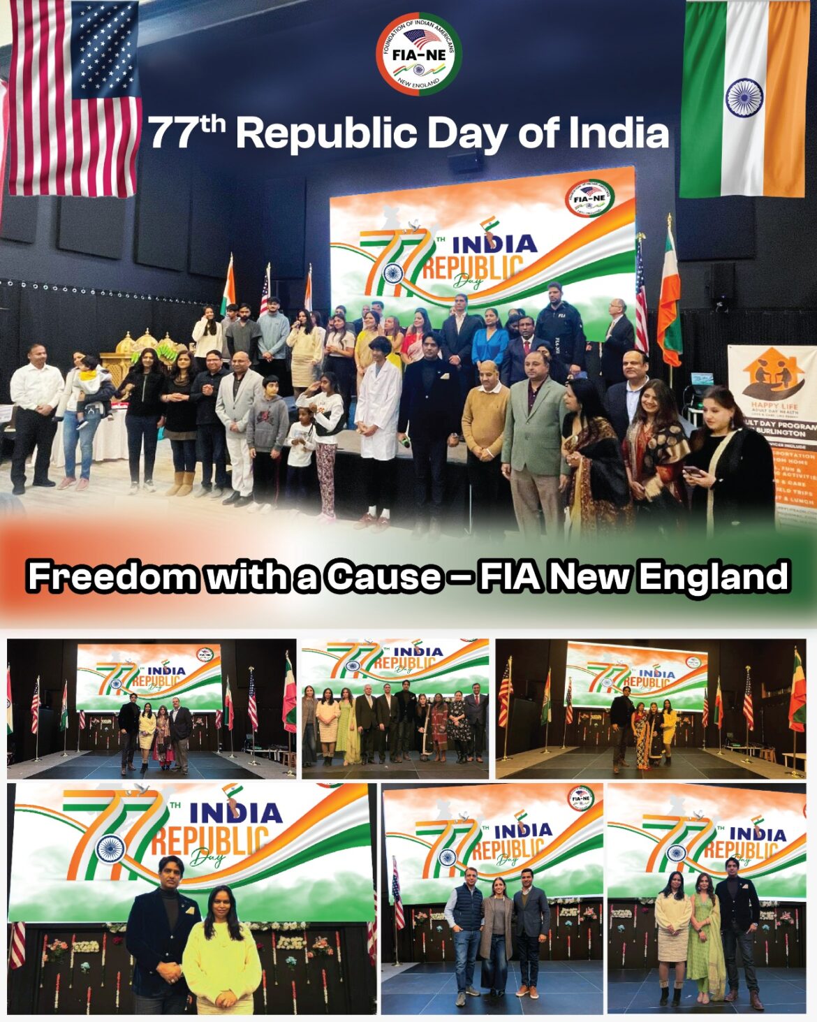 The Foundation of Indian Americans (FIA) – New England celebrated the 77th Republic Day of India with pride and patriotism at the Academy of Creative Arts on January 24, 2026, in Burlington, Massachusetts, honoring India’s freedom fighters and the architects of the Constitution of the Republic of India who laid the foundation of the nation.