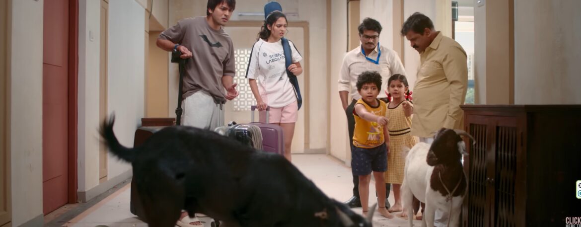 The fun and drama begin as cultures clash: the couple is prone to have late nights, consume non-vegetarian food, wear abbreviated clothing and more. The family sings full-throated devotional songs every early morning, refuses to move with the times and even maintains the animals (for a while, as we see!). Their values, mores and approach to life are contrasting to the extreme. The matriarch of the family even recommends to the couple that true joy lies only in marriage and not in live-ins.