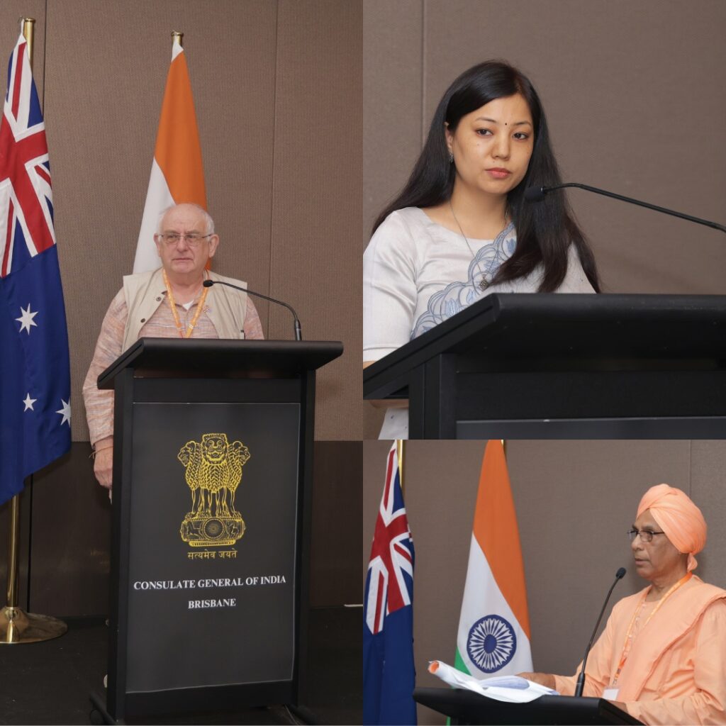 The conference opened with the ceremonial lighting of the lamp, followed by a Saraswati Vandana and collective rendition of Vande Mataram, commemorating the 150th anniversary of the song that had once unified India’s freedom movement. The ceremony was led by Neetu Bhagotia, Consul General (CG) of India in Brisbane, Neena Malhotra, Secretary (South), Ministry of External Affairs (MEA) and Gopal Baglay, High Commissioner of India to Australia.