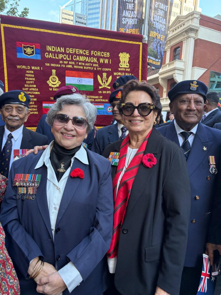Walking alongside her was Jennifer Borgonah, who carried her husband’s memory with equal resolve. Brigadier David Borgonah, an Ati Vishisht Seva Medal (AVSM) awardee, had marched in Sydney in 2018 for what would be his last ANZAC Day appearance before illness prevented further participation. He passed away in Perth in 2023.