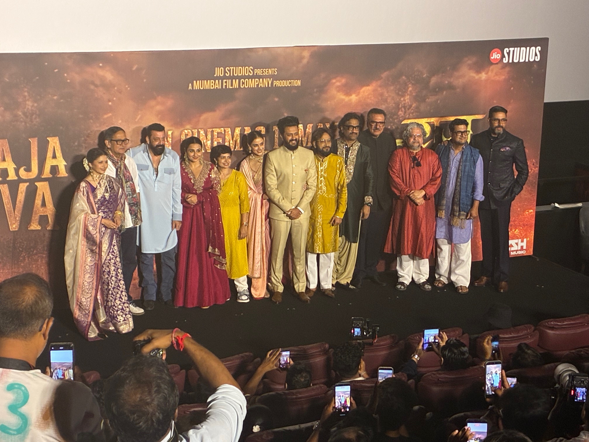 He said “For this to happen, it is not enough to dream, you need the right associates—of people who have a lion’s courage just like Shivaji Maharaj had. Everyone stood solidly behind me—Sanjay Dutt, Abhishek Bachchan, Ajay-Atul, Boman Irani, Mahesh-sir, Vidya ma’am, Bhagyashree ma’am, Amole-sir…I am not worthy of making a film on the stature of Emperor Shivaji, I think no one is.”
