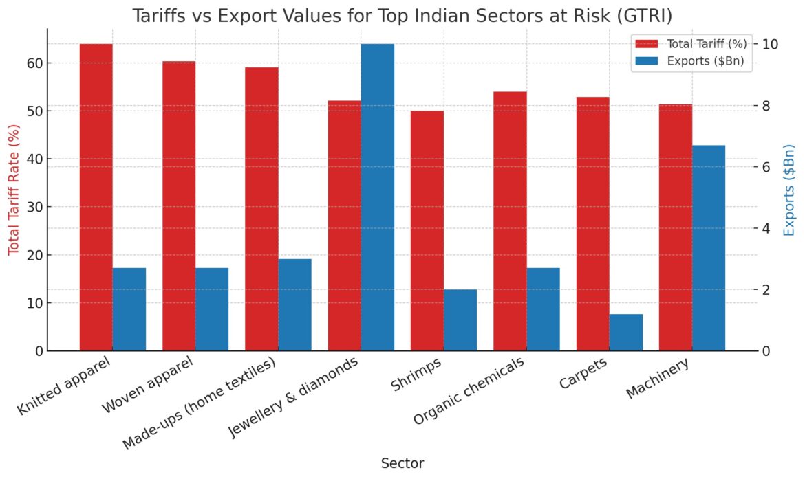 The tariff hikes, effective August 27, target India’s most competitive export sectors—textiles, carpets, shrimps, machinery, and gems—threatening losses of 50–70 per cent in some categories, according to the Global Trade Research Initiative (GTRI). Exemptions for pharmaceuticals, smartphones, and petroleum products reveal a calculated U.S. strategy: spare what Washington needs, squeeze where India is vulnerable.