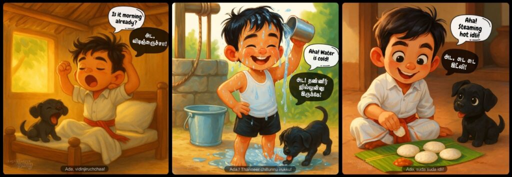 Tamil learning ends up scattered across the internet, hidden between playlists, WhatsApp forwards, and half-finished flashcard sets. Children lose interest quickly, not because Tamil is difficult, but because the learning experience is fragmented. They don’t get stories, visuals, characters, or structure. They don’t feel Tamil around them in a joyful, child-friendly way.