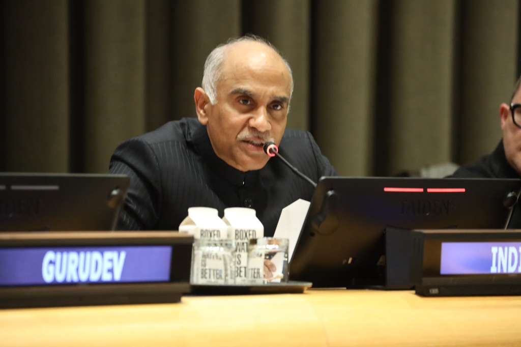 The high-level event brought together nearly 700 participants. Global humanitarian, spiritual leader, and peace envoy Gurudev Sri Sri Ravi Shankar delivered the keynote address and led the audience in a guided meditation session.