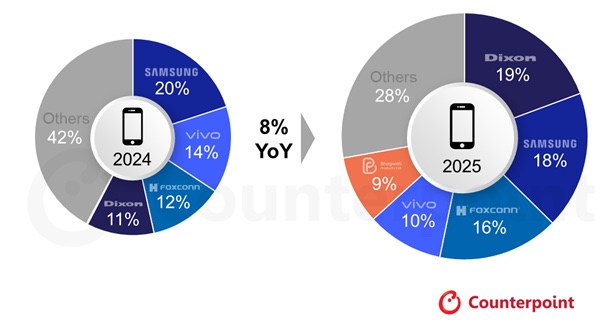 In a notable shift, Bhagwati Products Limited entered the top five manufacturers, buoyed by increased outsourcing from vivo, OPPO and realme.