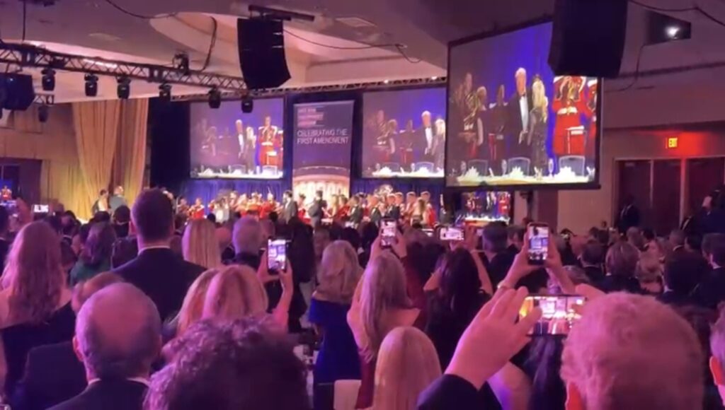 President Donald Trump, First Lady Melania Trump, cabinet officials, lawmakers, celebrities, and journalists were in attendance when the incident occurred.