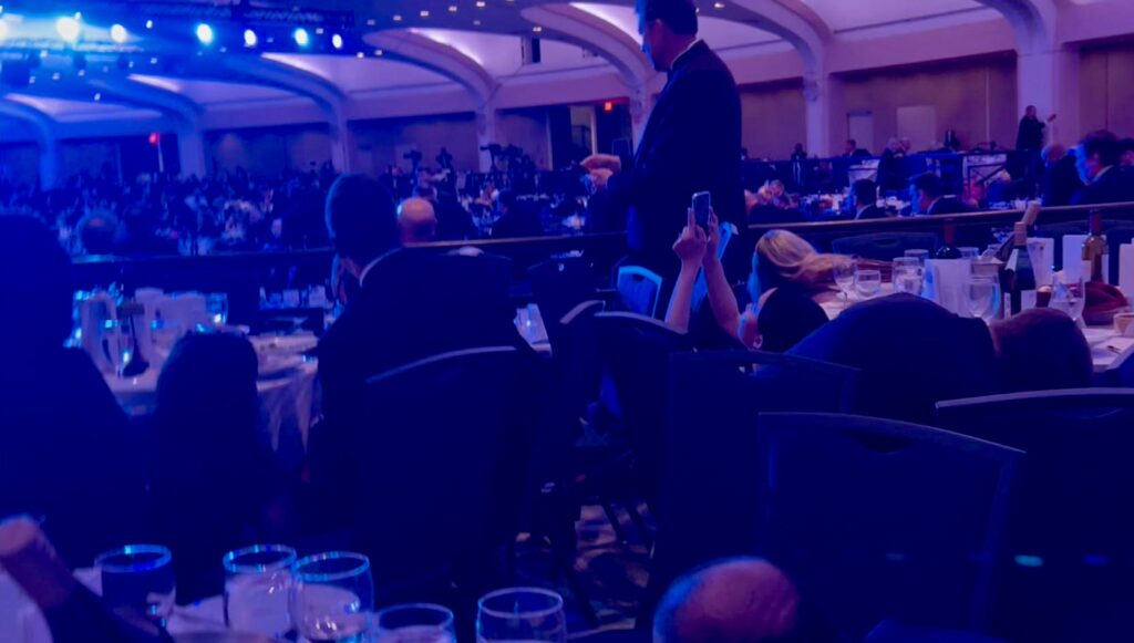 Representative Suhas Subramanyam, who was present at the event, recounted his experience, saying, “I was walking down the escalators from the lobby when, at the bottom of the escalators, 2 security people with guns were running through and yelling ‘watch out for crossfire.’”