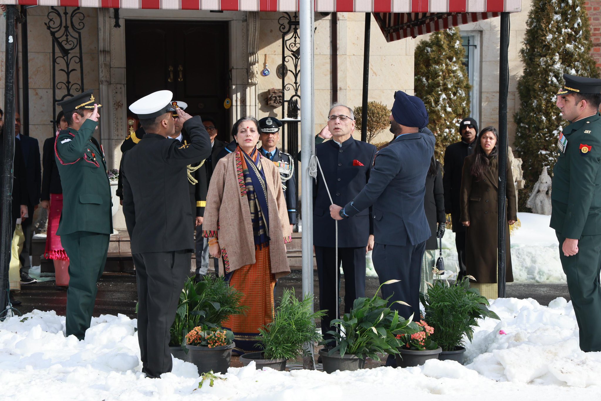 In Washington, D.C., India’s Ambassador to the United States, Vinay Kwatra, unfurled the tricolor at India House. Members of the Indian diaspora participated in the celebrations, during which the Embassy telecast President Droupadi Murmu’s address to the nation delivered on the eve of Republic Day.