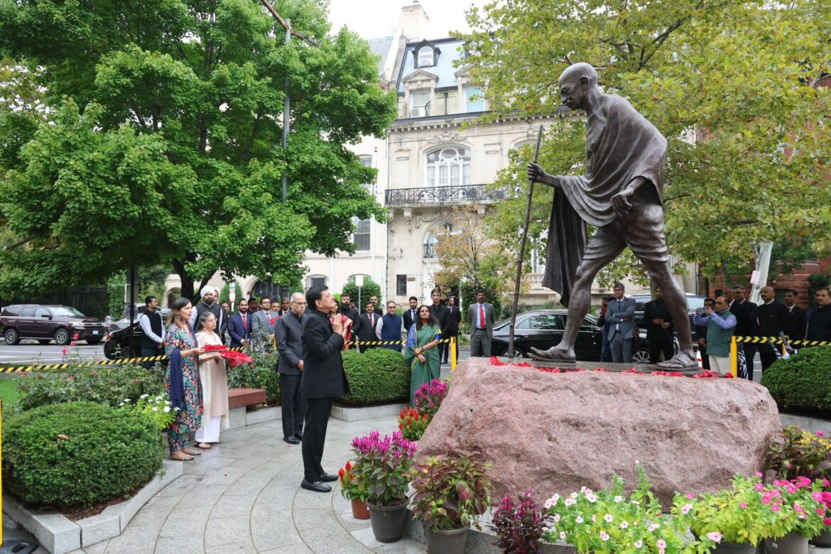 India’s Minister of Commerce and Industry, Piyush Goyal paid homage to Mahatma Gandhi on his 155th birth anniversary on October 2, 2024, at the Embassy of India in Washington DC.