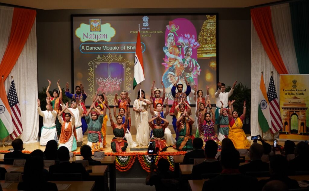 Artists performing a specially curated dance performance entailing 8 traditional dance forms of India at the Bell Harbor Conference Center on January 26, 2026, in Seattle. PHOTO: CGI, Seattle