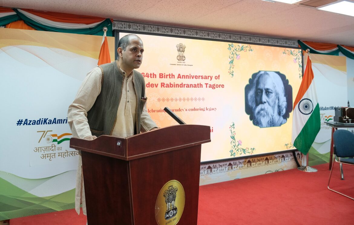 Shanghai, June 1, 2025 — The Consulate General of India (CGI) in Shanghai commemorated the 164th birth anniversary of Gurudev Rabindranath Tagore with a vibrant cultural celebration at the Vivekananda Cultural Centre. The event drew over 100 attendees, including members of the Indian diaspora, Chinese students, scholars, and admirers of Tagore’s literary and artistic legacy.