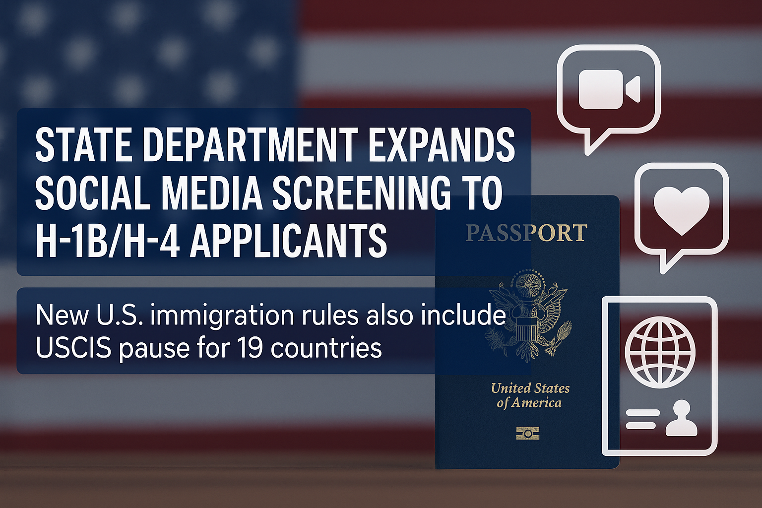 A new December 15, 2025, policy change by the U.S. State Department is expected to complicate international travel plans for thousands of H-1B professionals and their H-4 dependents. Starting December 15, all H-1B/H-4 visa applicants seeking visa stamping at consulates abroad will be subject to enhanced social media vetting procedures.