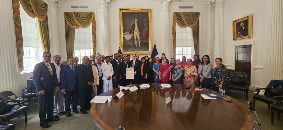 Deputy Commissioner for Trade, Investment, and Innovation in the NYC Mayor’s Office for International Affairs, Dilip Chauhan, presented the proclamation on behalf of Mayor Eric Adams to representatives of the Sri Sathya Sai Global Council on April 22nd in New York City.