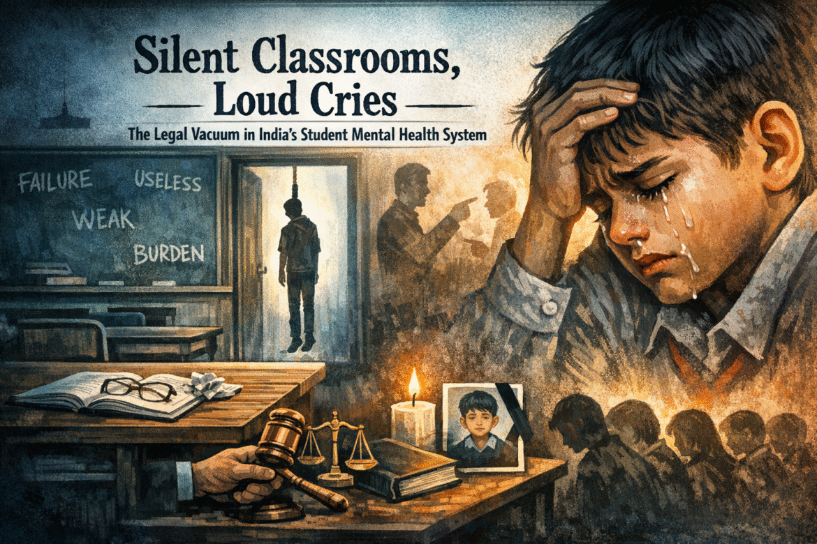 The article seeks to delve into the legal lacuna that exists within the mental health framework in India and the implementation problem that it faces. Subsequently, it also lays down the tragic state of the Indian education system and its precarious impact on student mental health. Further, it lays down the psychological inspirations the Indian mental health framework can take from other countries by doing a comparative analysis. The article aims to address the suicide cauldron, and the mental health calamity India is going through, and subsequently, how law and better implementation could effectively help to address the specific issue. The article concludes that with timely support, misfortunes like Shourya Patil’s could have been prevented, saving innumerable young lives.
