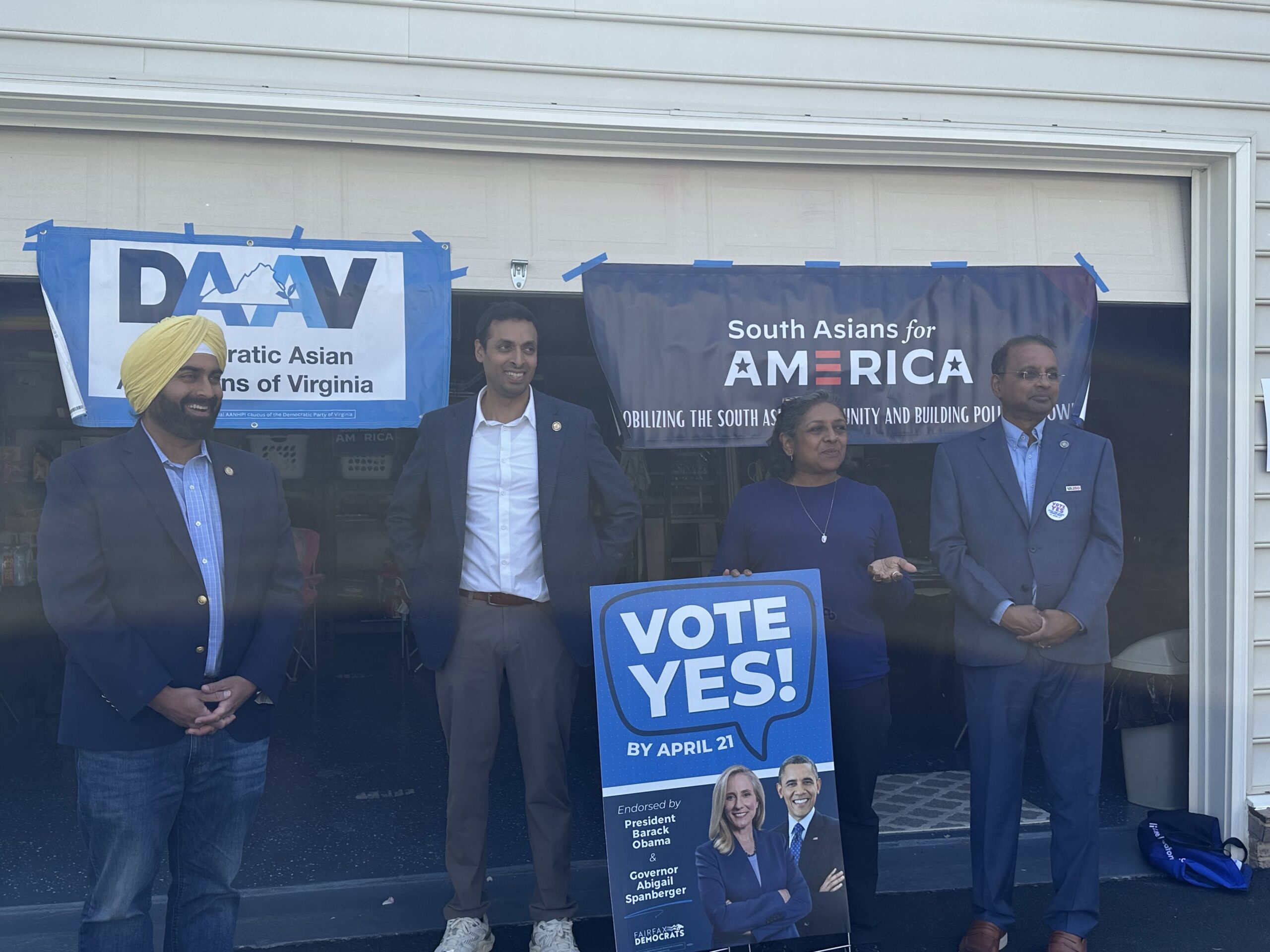 Ahead of the summit, South Asian organizers mobilized voters in Loudoun County, Virginia, on April 19, conducting door-to-door outreach in Ashburn. Many of those contacted were fellow South Asians, and organizers encouraged them to support the redistricting amendment in the special election.