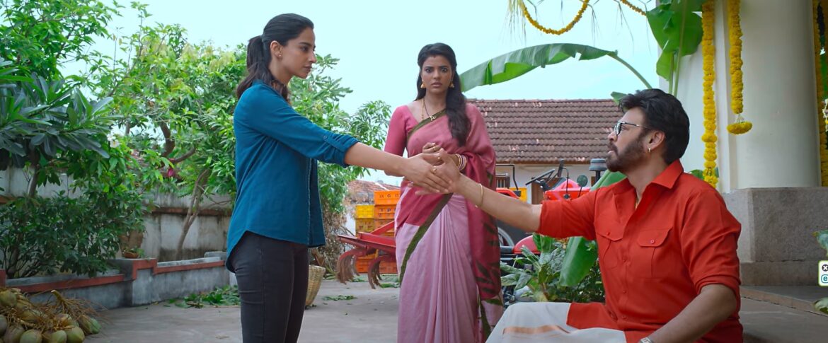 The only alternative is to get suspended ace cop and encounter specialist Y.D.S. Raju (Venkatesh), whose whereabouts are unknown, to rescue Satya by freeing Papa Pandey. Raju has been Meenakshi’s trainee and later lover but she has chosen the job over love when he was unfairly suspended. Luckily, she is able to locate him. But, by that time, Raju is a ghar jamai (resident son-in-law) in Rajahmundry, happily married to a simple girl, Bhagyalakshmi (Aishwarya Rajesh) and has fathered fourth children, including a dictatorial brat, Bulli Raju (Bheemala Revanth Pavan Sai Subhash—yes! That’s his name!). His father-in-law is rolling in money.