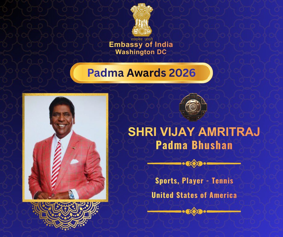 The Indian American honorees include Dr. Nori Dattatreyudu in the field of Medicine (Padma Bhushan); Tennis star Vijay Amritraj in the field of Sports (Padma Bhushan); and Dr. Prateek Sharma also in the field of Medicine (Padma Shri).