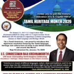 As part of Tamil American Heritage Month 2026, U.S. lawmakers joined community leaders to celebrate Tamil heritage and culture by honoring Tamil Americans for their “exemplary” contributions to the community. The event was held on January 22, 2026, at the U.S. Capitol in Washington, D.C.