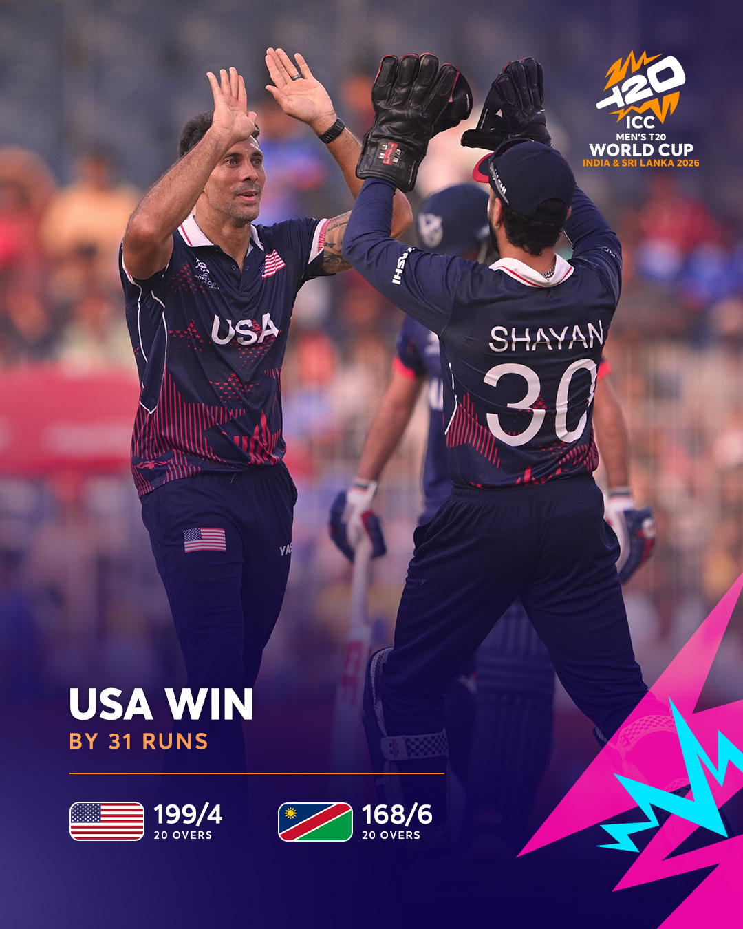 The United States live to breathe another day after securing their second win at the 2026 ICC T20 World Cup, beating Namibia by 31 runs at the M. Chidambaram Stadium in Chennai. A superior batting performance was enough for the USA to get over the line, with their chances of qualifying for the Super 8 stage still alive, subject to Namibia’s game against Pakistan.