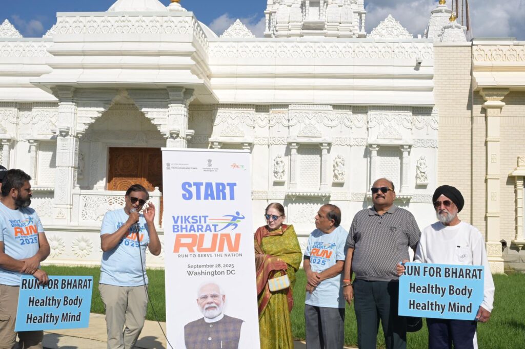 Community leaders speak during the Viksit Bharat Run on September 28, 2025, in Maryland. PHOTO: India in USA